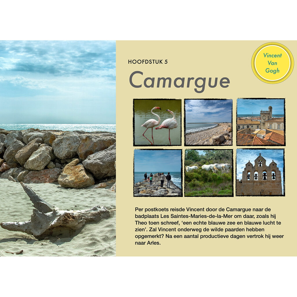 Uiteraard bezoek ik de nabij gelegen, beroemde stadjes. Zoals St. Remy de Provence waar Vincent in de kliniek verbleef. De zonovergoten Camargue ontbreekt uiteraard niet. Ook hier zien we wat hij ooit zag…
