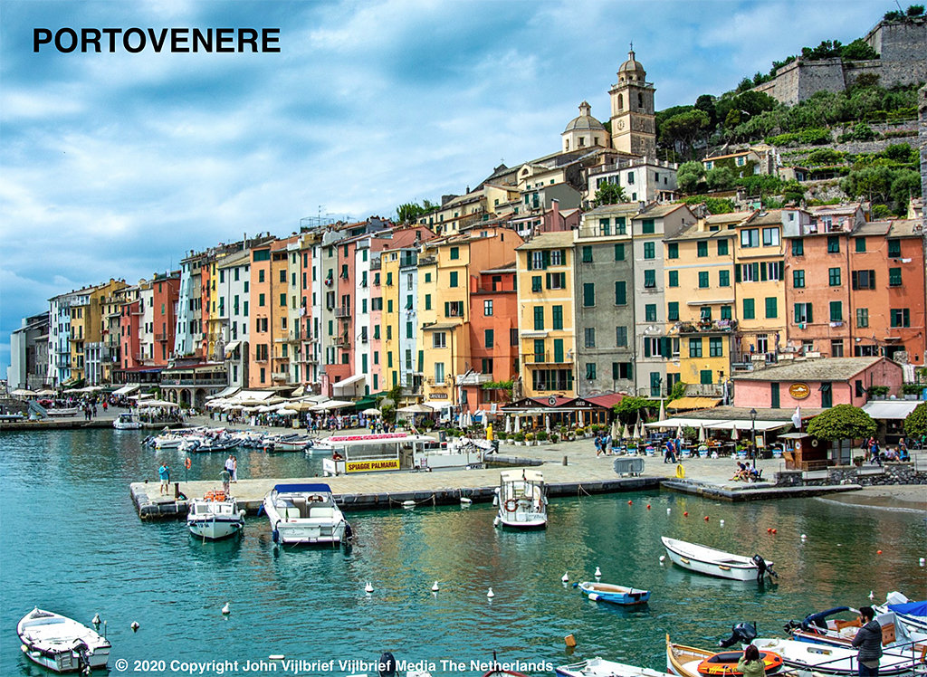 The Cinque Terre contains of five picturesque villages with houses, built next to and on top of each other and colorfully painted. Yellow, pink, ocher and blue. Houses, situated between mountain ranges, on cliffs and coves close to the sea. In addition to spectacular images, that provides challenging hiking routes! Along the fascinating terraced landscape and the turquoise sea on which the glint of the sun gives you such that wonderful and special feeling. All that makes it fairytale here. Especially with a delicious glass of white wine from this region with a light meal on the terrace of a restaurant, enjoying what is happening around you. And that’s a lot! The noise of people, the sound of birds and sea waves breaking on the rocky coast.