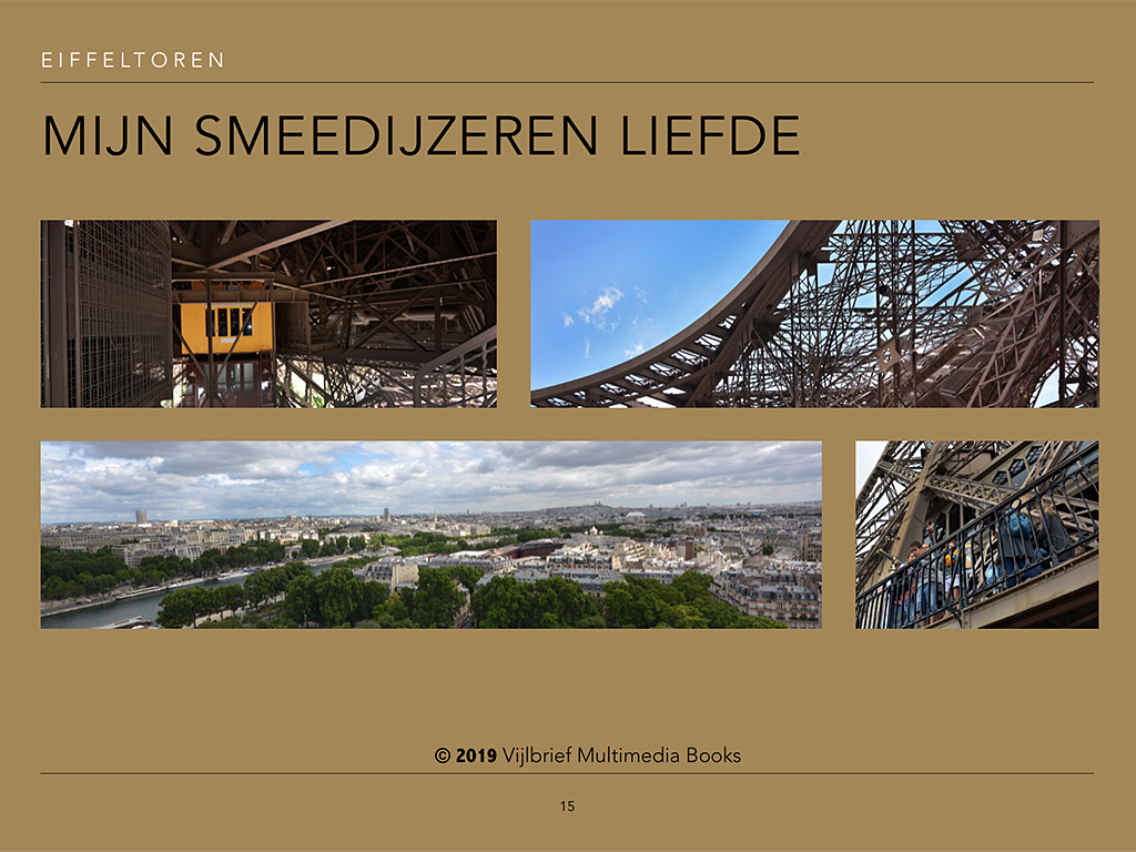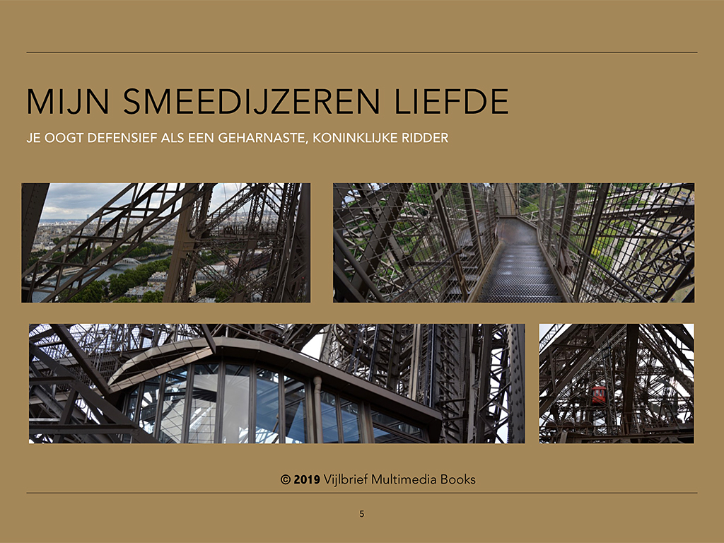 Met je vier grote, smeedijzeren platvoeten sta jij daar in het groen van het park stevig vastgeklonken aan het aardse. IJzersterk en uitdagend toorn je 312 meter uit boven het prachtige en majestueuze Parijs, wat jouw thuis is. De langste ben je helaas niet meer, maar wel de meest besprokene. Je laat je dagelijks beklimmen en betasten. Daarvoor komen ze uit alle windstreken van de globe, jaarlijks zo’n zeven miljoen+. Ze vergapen zich aan je. Vinden je mooi of lelijk. Raar of briljant. Ze krioelen om je heen.