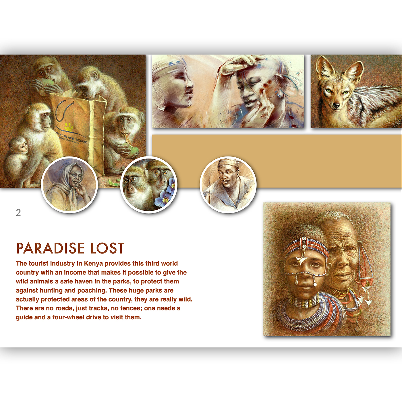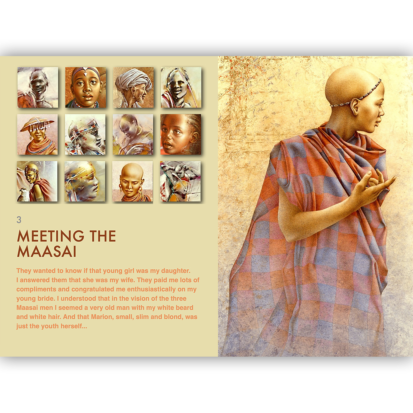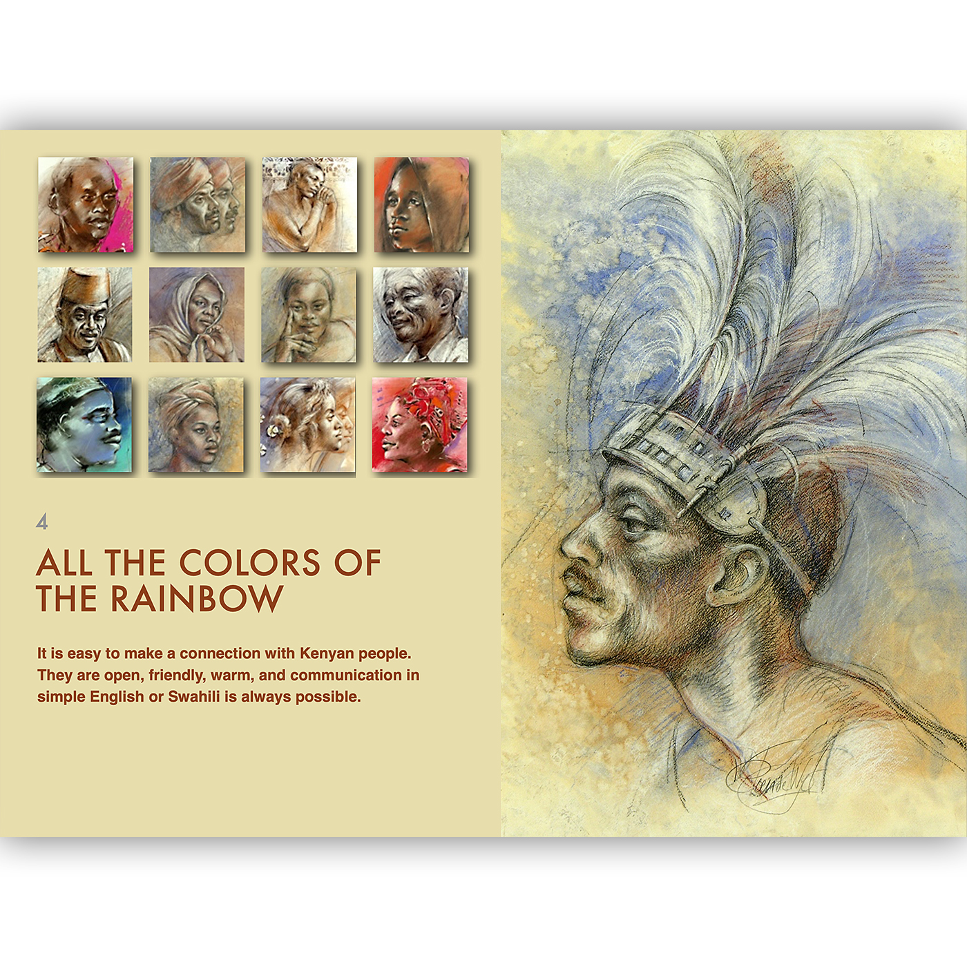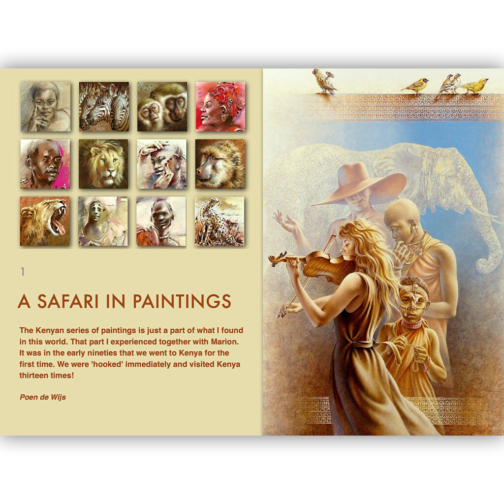 De kunstschilder van het Modern Realisme Poen de Wijs reist samen met zijn vrouw, de kunstschilder van het Expressionisme Marion van Nieuwpoort meerdere malen door Kenia. In verschillende teken- en schildertechnieken visualiseren ze mensen en dieren. Met als resultaat dit fraaie digitale boekwerk.