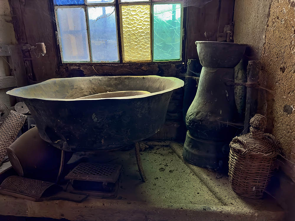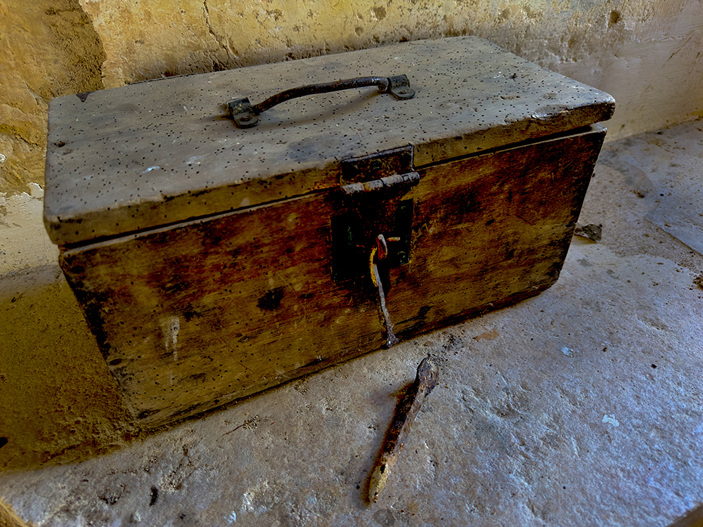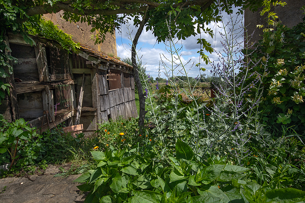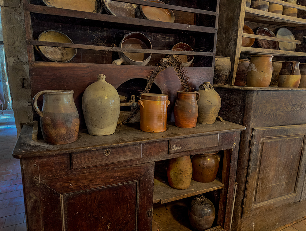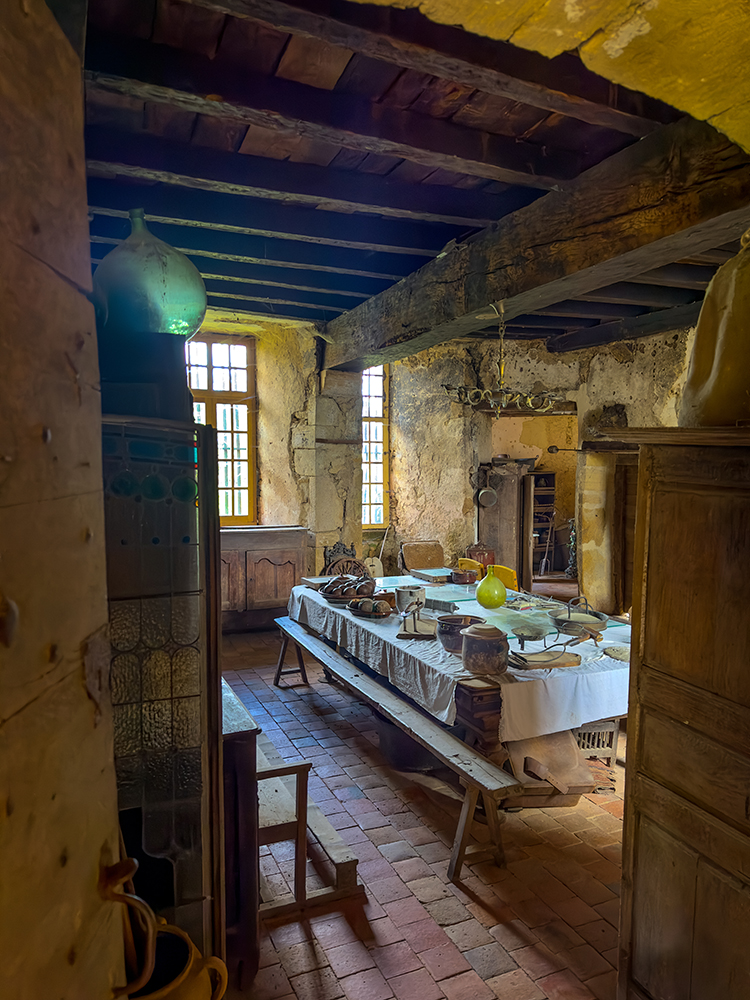John: ‘Onderstaand treft u recent fotomateriaal aan, onder meer van een château in Frankrijk. In die periode bezocht ik meerdere beroemde kastelen. Ik had ergens ook iets gelezen over een oud, vervallen kasteel dat een bezoek waard zou zijn. Na een lange autorit over Franse binnenwegen waar je niet hard mag rijden (er staan flitsers), bereikte ik het kasteel. Er waren geen bezoekers. Achteraf bleek dat iemand uit de familie van de eigenaar mij had binnengelaten. Ik was zo onder de indruk van het versleten interieur dat ik er uren bleef fotograferen. Ook de omliggende gebouwen. Op enig moment kwam er iemand naar me toe en vroeg of ik een beroepsfotograaf was, omdat ik zo lang aan het fotograferen was. Die vraag beantwoordde ik bevestigend en liet haar enkele foto’s op de achterwand van mijn fotocamera zien. Ze vroeg of ik de beelden aan haar moeder wilde tonen. Achter het kasteel staat een woonhuis, verscholen achter bomen en ongesnoeid struikgewas. De familie zat uitgebreid te lunchen aan een lange tafel, zoals je dat vaak in films ziet. Verschillende mensen bekeken de foto’s en we maakten afspraken over het gebruik ervan.