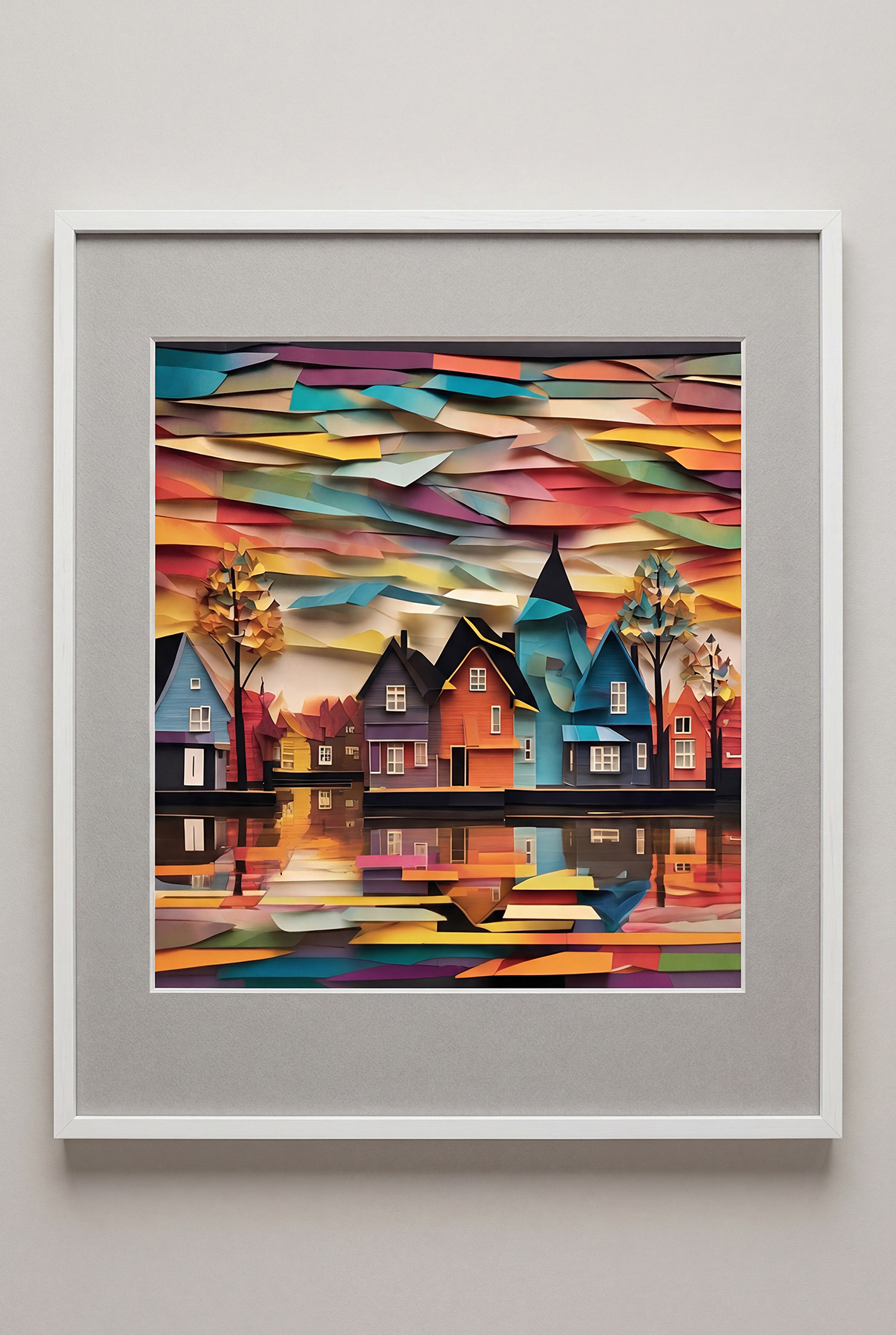 Boven: Venetië en Honfleur (Frankrijk). Daaronder Boedapest. Vrolijke en kleurrijke werkstukken die uw ruimte iets bijzonders geven. Maak kennis met mijn betoverende Skyline creaties van kleurrijk papier: speelse werkstukken die ik met zorg realiseerde.