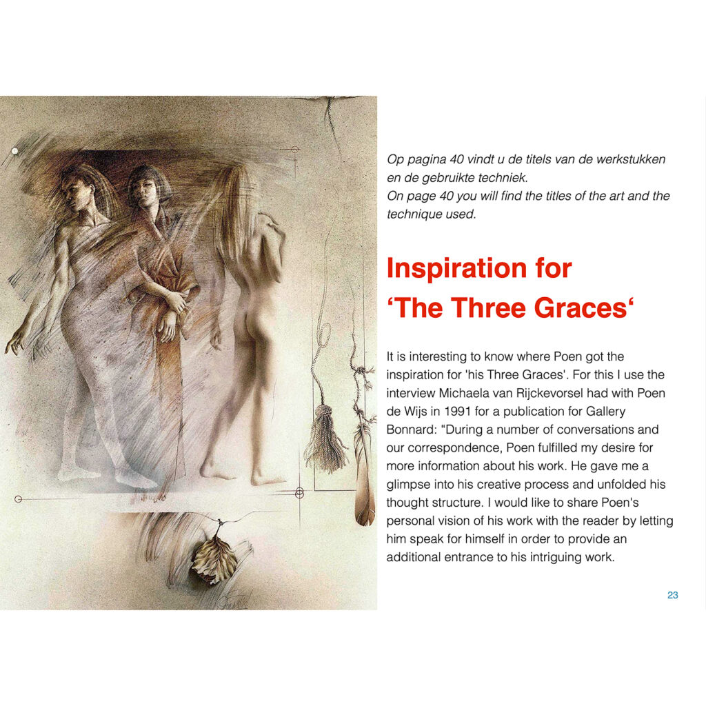 Poen de Wijs heeft geruime tijd gewerkt aan zijn collectie met het thema ‘de drie gratiën’. Hoe het idee voor deze uitgebreide collectie schilderijen, aquarellen en schetsen ooit ontstond, wordt uitvoerig in dit boek beschreven. Ook wordt ingegaan op het creatieve proces dat hieraan voorafging: het bestuderen en naschilderen van kunstwerken van Rubens, Botticelli en Boucher. Poen deed dit moeiteloos, zoals u aan de werkstukken in dit boek kunt zien.